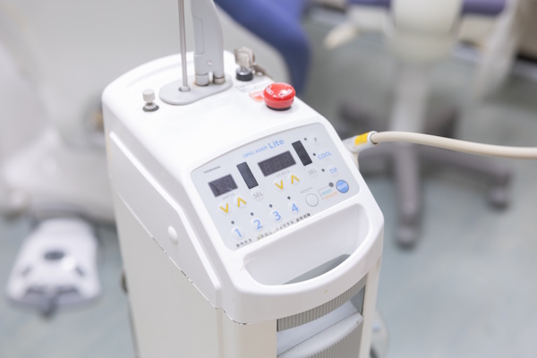 オペレーザーLiteは、国内の歯科医療現場で非常に高いシェアを誇る、信頼性の高い「炭酸ガス(CO2)レーザー」です。レーザーのエネルギーが組織の表面(水分)に効率よく吸収されるため、患部以外の組織へのダメージを最小限に抑えながら、ピンポイントで安全な処置を行うことができます。